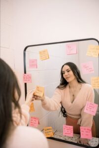 - Notice when you engage in negative self-talk and ask yourself if you would ever say that to your friend, your mom, your aunt….your daughter!? If you wouldn’t say it to someone you care about, why are you saying it to yourself?